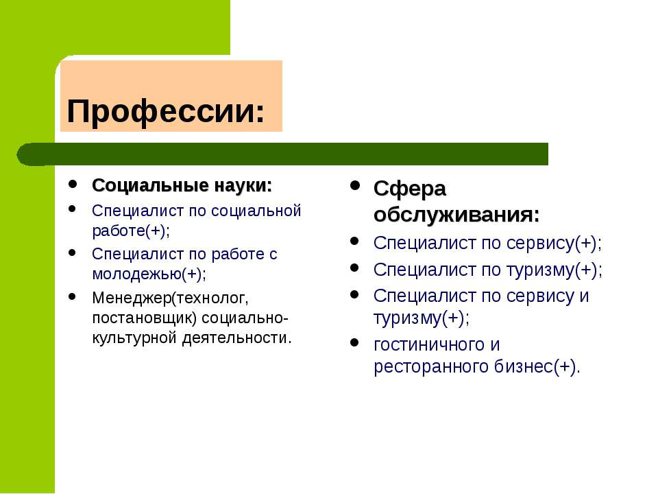 Если же рассматривать весь спектр возможных базовых, традиционных направлений деятельности, то в отдельную группу можно выделить **Профессии, связанные с обществознанием**.