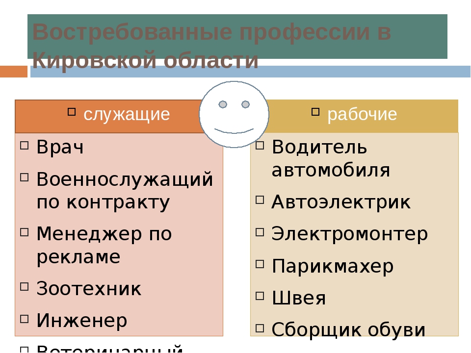 Ниже приводим список профессий.