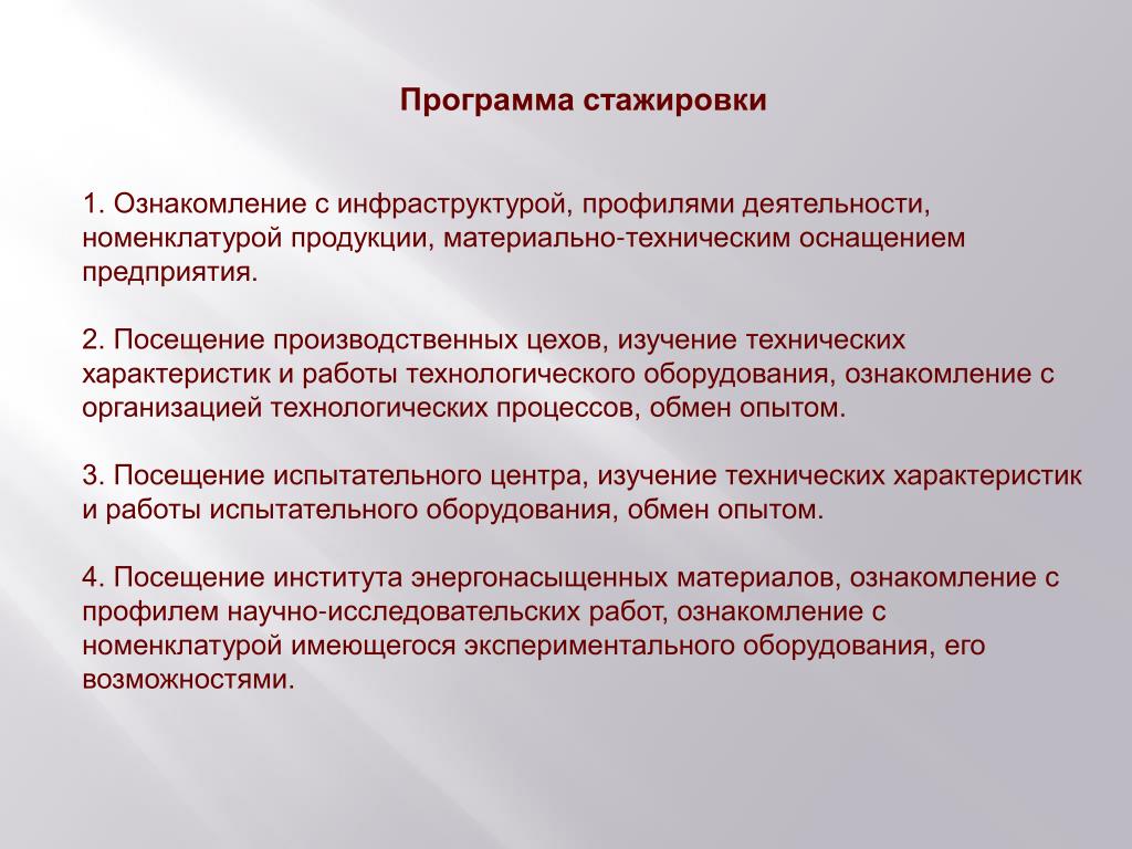 - Программа стажировки