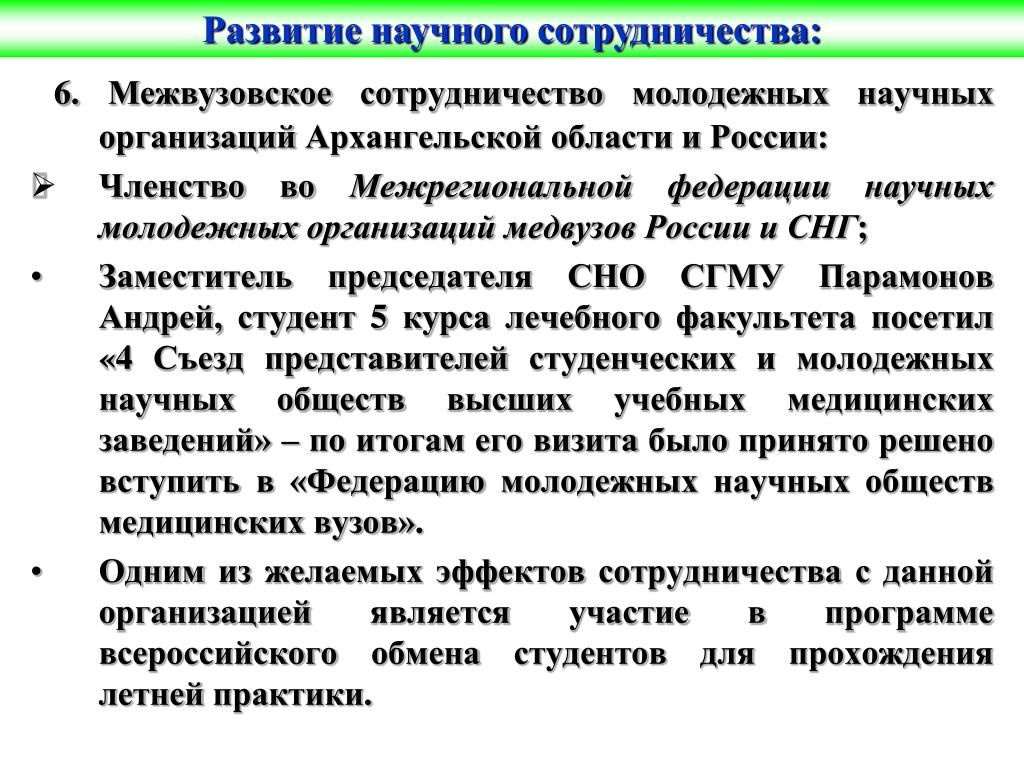 Ежегодно более 15 000 студентов-медиков отправляются в путешествие, чтобы изучить предоставление медицинских услуг и системы здравоохранения в различных культурных и социальных условиях. Это достигается за счет создания сети активных студентов на местном и международном уровнях, которые в глобальном масштабе облегчают доступ к исследовательским проектам и проектам клинического обмена, которые обычно длятся четыре недели. Посредством наших программ и возможностей мы стремимся развивать как студентов, чувствительных к культурным особенностям, так и опытных исследователей, которые намерены формировать мир науки в ближайшем будущем.Наши программы обмена являются ключевым фактором межкультурного взаимопонимания и сотрудничества между студентами-медиками и медицинскими работниками, что, по мнению IFMSA, очень необходимо в нашем глобализированном мире.