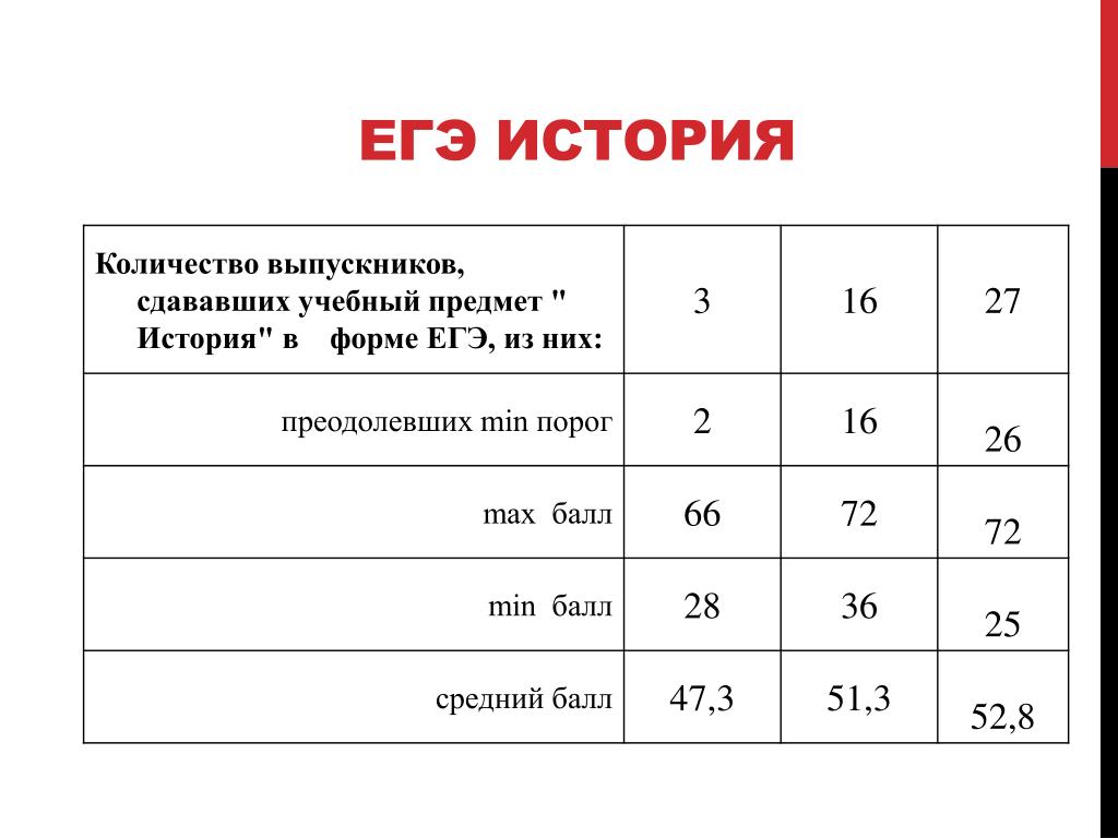 - 32 балла – по истории и литературе;