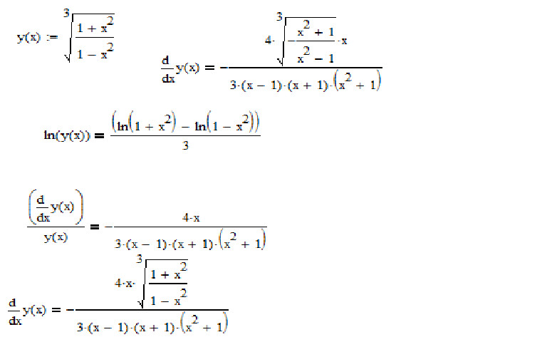 y’=y·(ln(f(x)))’=(x2+x+1)x3·ln(x2+x+1)x3’==(x2+x+1)x3·x3·(x2+x+1)’==(x2+x+1)x3·x3’·ln(x2+x+1)+x3ln(x2+x+1)’==(x2+x+1)x3·3×2·ln(x2+x+1)+x3·1×2+x+1·x2+x+1’==(x2+x+1)x3·3×2·ln(x2+x+1)+x32x+1×2+x+1==(x2+x+1)x3·3×2·ln(x2+x+1)+2×4+x3x2+x+1