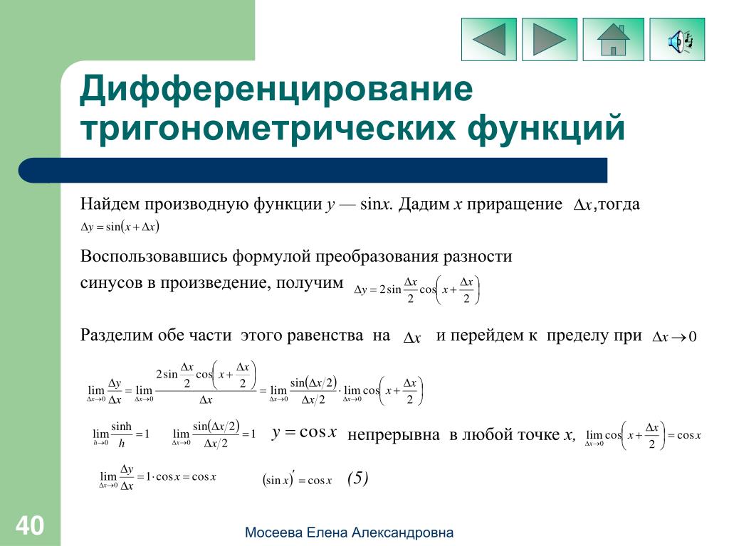 Производная тригонометрической функции