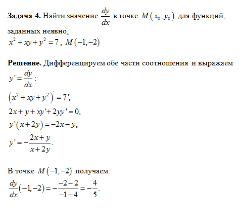 Нахождение значений производных в точке
