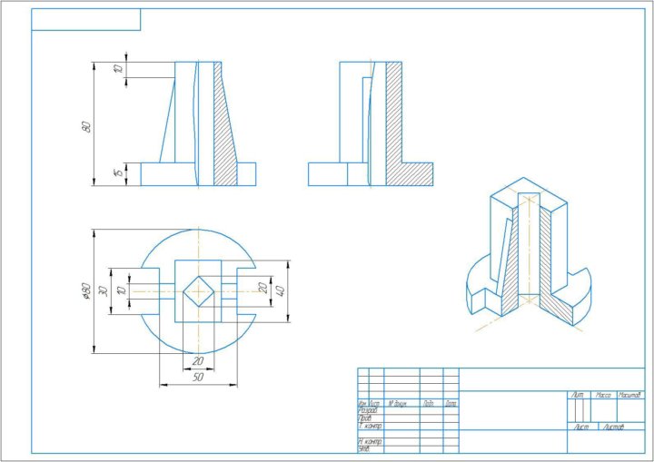 3. Вычертить два заданных вида детали в соответствии с размерами.