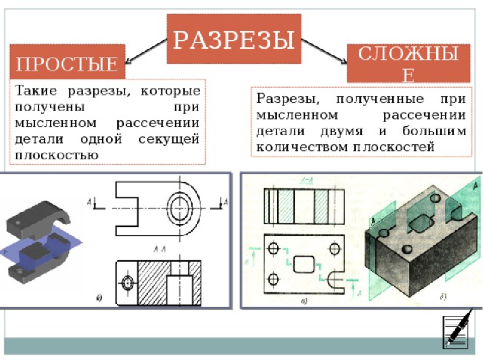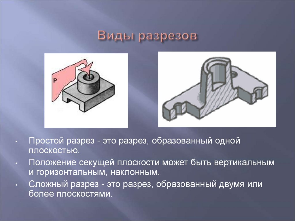 В зависимости от числа секущих плоскостей разрезы разделяются на простые и сложные.
