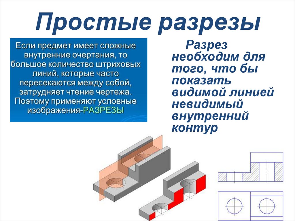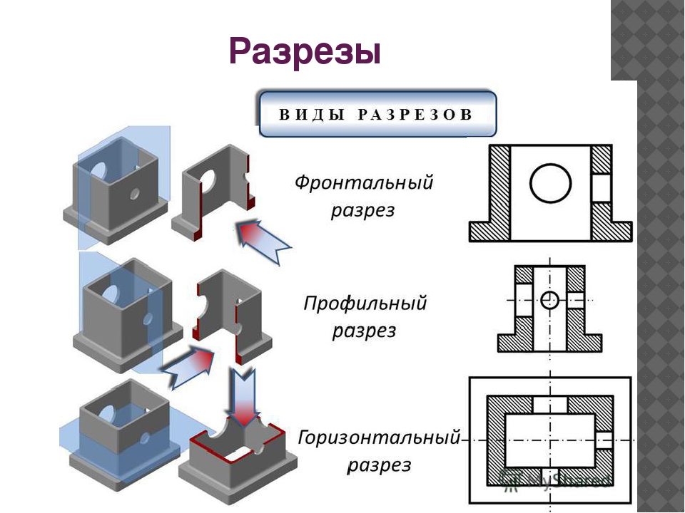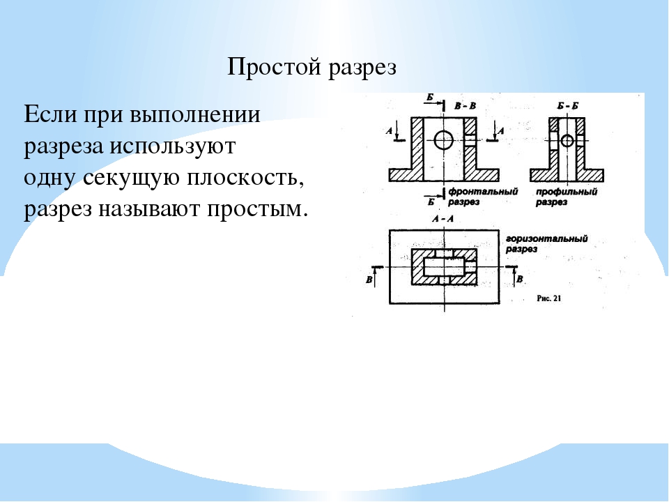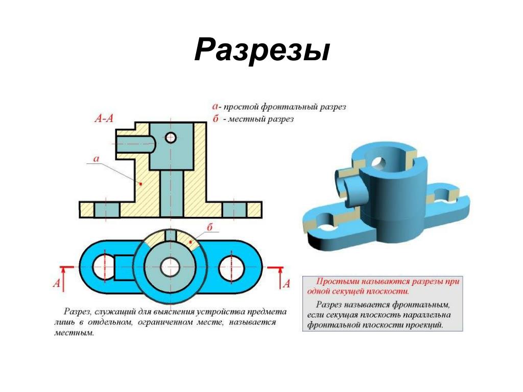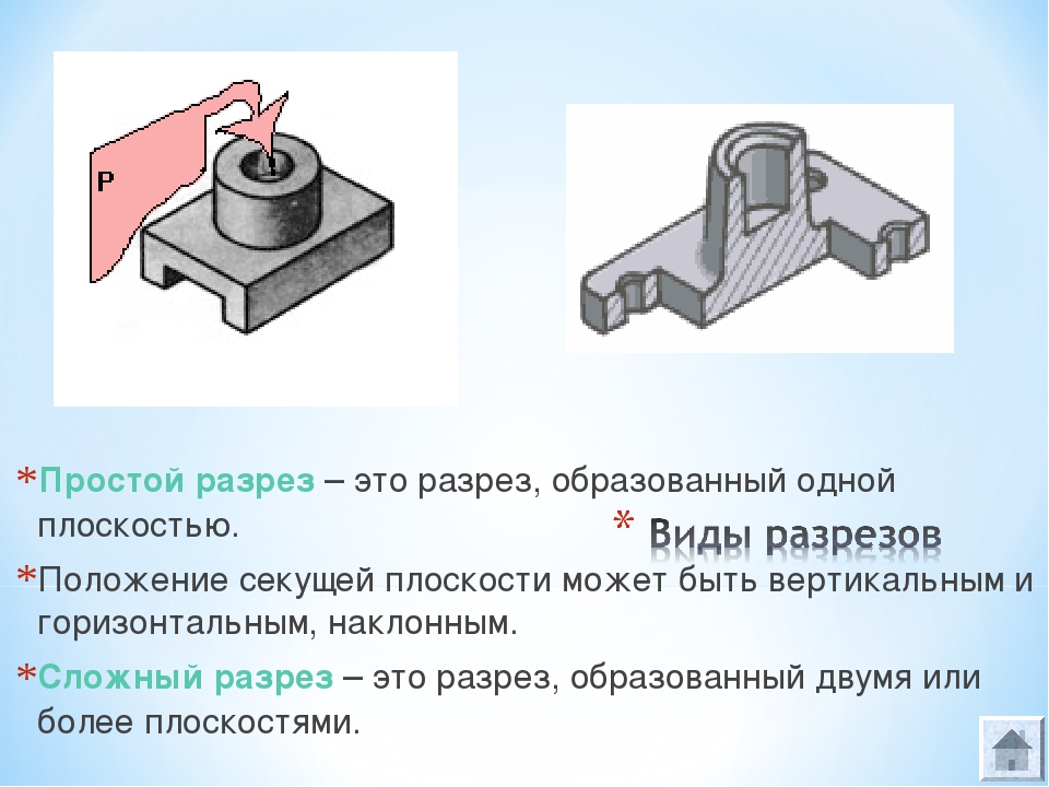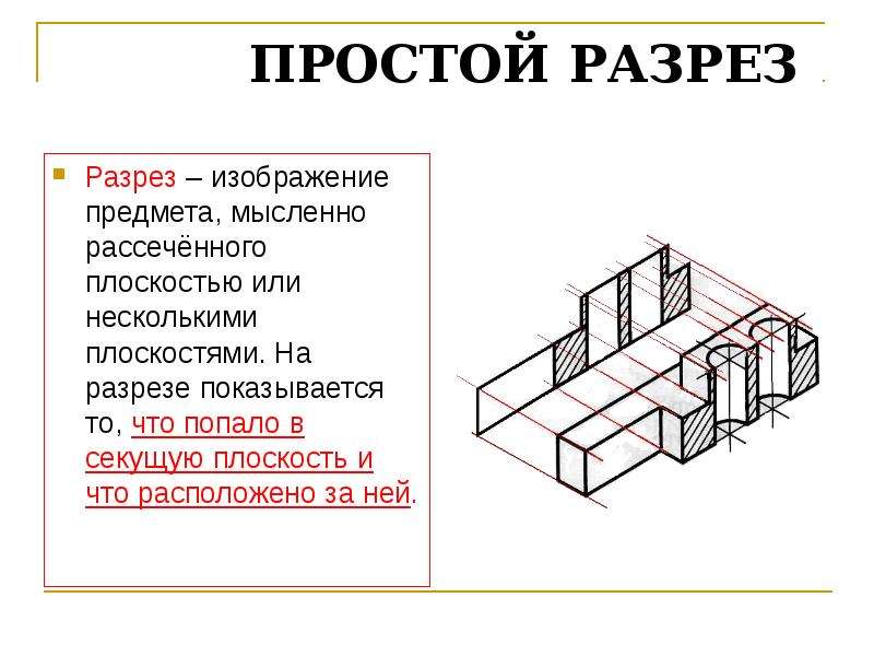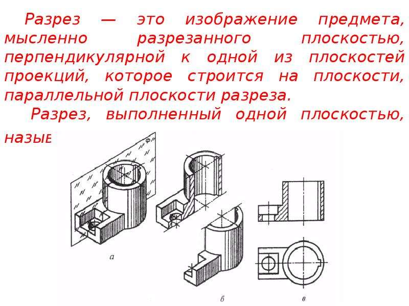 Разрез — изображение предмета, мысленно рассеченного одной или несколькими плоскостями.