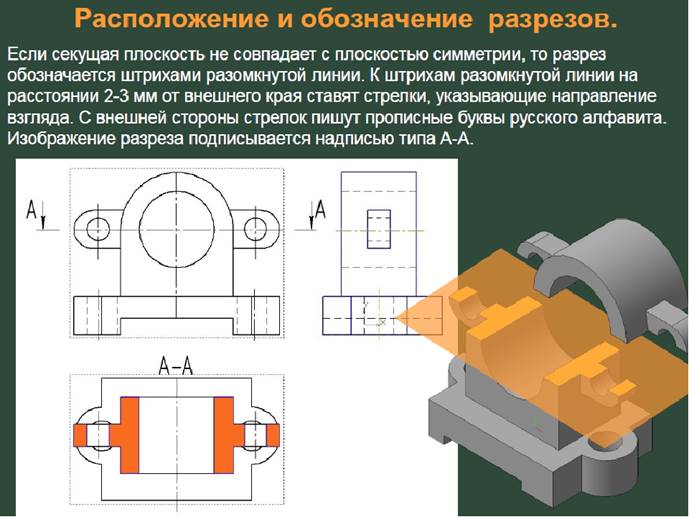 Разрез должен быть отмечен надписью по типу «А—А» (всегда двумя буквами через тире)