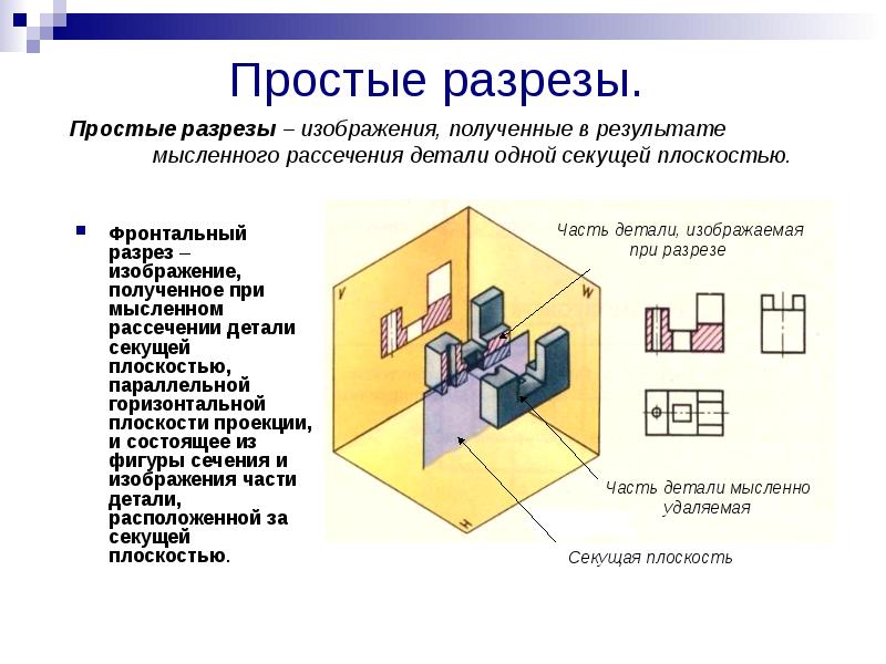 В разрезе изображают то, что расположено в плоскости