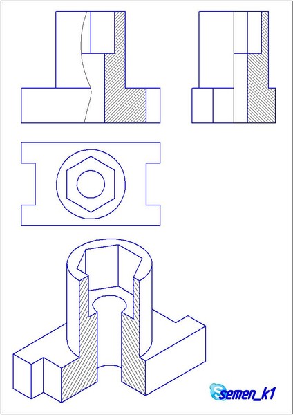 5. Для выявления внутреннего строения детали выполнить простой