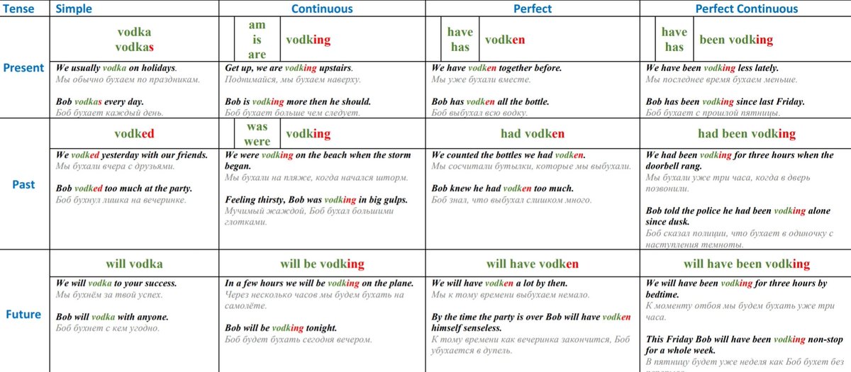Past Perfect, Present Simple, Future Perfect… Годами учили в школе английские времена, но так ничего и не поняли? Благодаря этой статье всего за несколько минут прочтения вы сможете структурировать кашу в вашей голове и понять английскую грамматику значительно лучше.