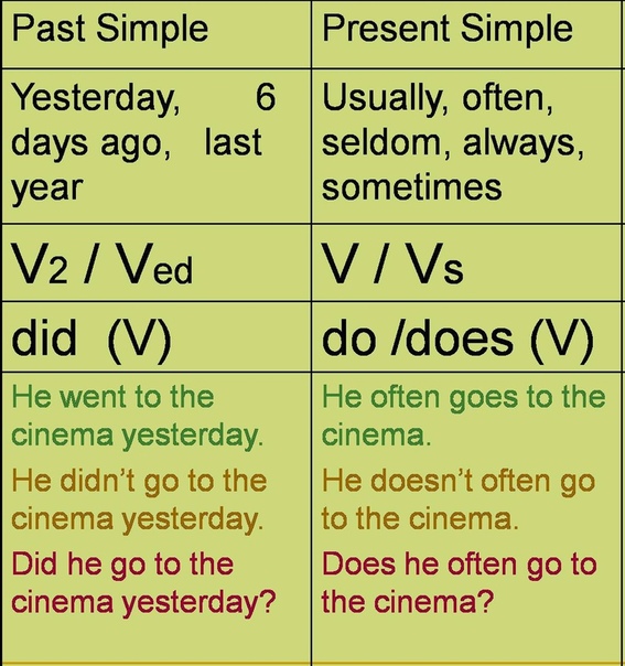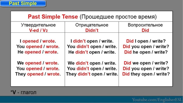 Определения полного времени трудно понять без примеров.Таблицы 1 и 6 показывают, что правильный глагол ходить и неправильный глагол должен быть в каждом из времен для субъектов первого, второго и третьего лица. Правильные глаголы, такие как to walk , образуют прошедшее и идеальное время, добавляя к настоящему времени -d или -ed . Но многие английские глаголы имеют неправильную форму и по-разному образуют прошедшее время.