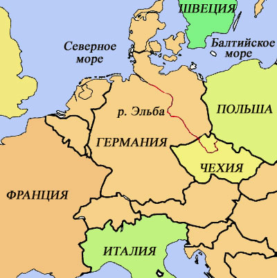GEOGRAPHY Location: Germany is located in the heart of Europe, at the crossroads between west and east, north and south. The northern border is formed by the North Sea and the Baltic Sea, separated by a brief border with Denmark. Germany borders on the Netherlands, Belgium, Luxembourg, and France to the west, Switzerland and Austria to the south, and Poland and the Czech Republic to the east. Size: Germany has an area of 357,022 square kilometers. The longest distances are 876 kilometers from north to south and 640 kilometers from east to west. One-third of the country’s territory belonged to the former East Germany. Land Boundaries: Germany shares land boundaries with Austria (784 kilometers), Belgium (167 kilometers), the Czech Republic (646 kilometers), Denmark (68 kilometers), France (451 kilometers), Luxembourg (138 kilometers), the Netherlands (577 kilometers), Poland (456 kilometers), and Switzerland (334 kilometers). Disputed Territory: In November 1990, Germany and Poland settled a protracted historical dispute by signing a treaty confirming the Oder–Neisse line as a permanent border. Length of Coastline: Germany’s coastline along the North Sea and Baltic Sea measures 2,389 kilometers. Maritime Claims: Germany claims a territorial sea of 12 nautical miles and an exclusive economic zone of 200 nautical miles. Topography: Germany is divided into four distinct topographic regions. Principal Rivers: Germany’s principal rivers, ordered by length, are the Rhine, Elbe, Danube, Main, Weser, Saale, Ems, Neckar, and Havel. The Rhine River, which stretches 1,320 kilometers from Switzerland through Germany and the Netherlands to the North Sea, is a major north–south transportation route. The next most commercially significant river is the Elbe, which flows 1,165 kilometers from the Czech Republic through Germany to the North Sea. Climate: The northwestern and coastal areas of Germany have a maritime climate caused by warm westerly winds from the North Sea; the climate is characterized by warm summers and mild, cloudy winters. Farther inland, the climate is continental, marked by greater diurnal and seasonal variations in temperature, with warmer summers and colder winters. The alpine regions in the extreme south and, to a lesser degree, some areas of the Central Uplands have a so-called mountain climate. This climate is characterized by lower temperatures as a result of higher elevations and greater precipitation caused by air becoming moisture-laden as it rises over higher terrain. Overall, Germany’s climate is moderate and is generally without sustained periods of cold or heat. The yearly mean temperature for the country is about 9° C. During January, the coldest month, the average temperature is approximately 1. Natural Resources: Germany does not possess extensive natural resources, so it depends on imports to acquire them. However, coal is an exception. In fact, Germany has the largest coal reserves in the European Union: an estimated 7.4 billion short tons as of 2004. Land Use: As of 2004, Germany’s land use was as follows: settlement and transportation infrastructure, 12.8 percent; agriculture, 53.0 percent; forests, 29.8 percent; water, 2.3 percent; and miscellaneous, 2.1 percent. Environmental Factors: The Federal Ministry of the Environment, Nature Conservation, and Nuclear Safety is responsible for environmental protection. The ministry has taken a very strict approach toward environmental protection. Time Zone: Germany is in the Central European Time (CET) zone, which is normally one hour ahead of Greenwich Mean Time (GMT). | Географическое положение Германии: Германия расположена в Центральной Европе. Она граничит с Данией и омывается Северным и Балтийским морями на севере. На западе граничит с Нидерландами, Бельгией, Люксембургом и Францией, на юге со Швейцарией и Австрией, на востоке с Польшей и Чешской Республикой. Площадь: Общая площадь страны 357.022 км?. Наибольшая протяженность с севера на юг – 876 км, с запада на восток – 640 км., 1/3 территории принадлежит бывшей Восточной Германии. Сухопутные границы: Германия граничит с Австрией (784 км), Бельгией (167 км), с Чешской республикой (646 км), Данией (68 км), Францией (451 км), Люксембургом (138 км), Нидерландами (577 км.), с Польшей (456 км) и Швейцарией (334 км). Территориальные споры: В ноябре 1990 г. Германия и Польша урегулировали длительный исторический спор, подписав соглашение по которому берега рек Одер-Нейсе считаются постоянной границей. Длина береговой линии: Береговая линия Германии вдоль Северного и Балтийского морей составляет 2389 км. Претензии на морской границе Германия претендует на территориальные воды шириной в 12 морских миль и исключительной экономической зоны в 200 морских миль. Топография Германия разделена на 4 топографические области. С севера на юг: Северо-Германская низменность, Среднегерманская возвышенность, Предальпийская зона, Альпы. На севере равнина 