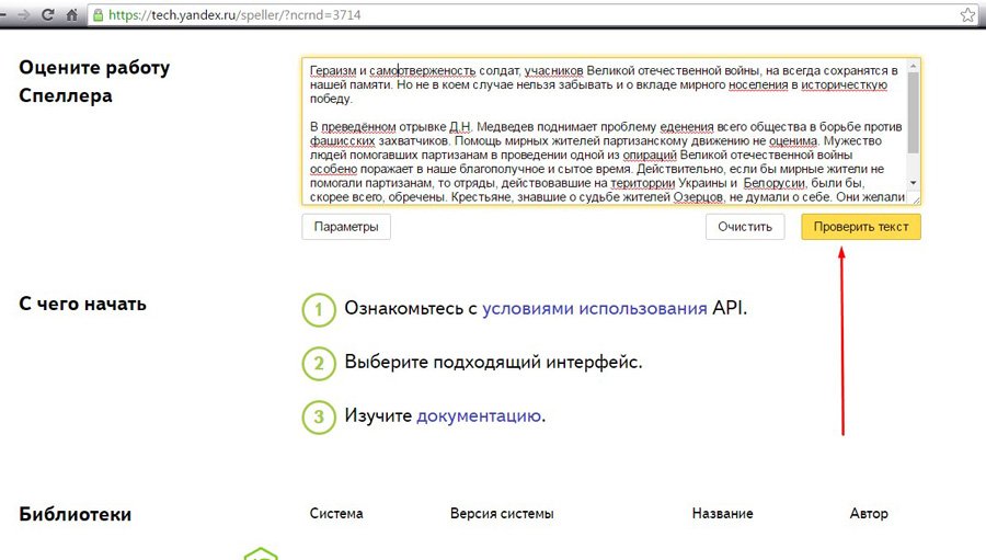 Π§ΡΠΎΠ±Ρ ΠΏΡΠΎΠ²Π΅ΡΠΈΡΡ ΡΠ΅ΠΊΡΡ, Π½ΡΠΆΠ½ΠΎ Π²ΡΡΠ°Π²ΠΈΡΡ Π΅Π³ΠΎ Π² ΡΠΎΠΎΡΠ²Π΅ΡΡΡΠ²ΡΡΡΠ΅Π΅ ΠΏΠΎΠ»Π΅ ΠΈ Π½Π°ΠΆΠ°ΡΡ Β«Π·Π°ΠΏΡΡΡΠΈΡΡ ΠΏΡΠΎΠ²Π΅ΡΠΊΡΒ». ΠΠ΅ΠΏΡΠ°Π²ΠΈΠ»ΡΠ½ΠΎΠ΅ Π½Π°ΠΏΠΈΡΠ°Π½ΠΈΠ΅ ΠΎΡΡΠ°Π·ΠΈΡΡΡ ΠΊΡΠ°ΡΠ½ΡΠΌ ΡΠ²Π΅ΡΠΎΠΌ. Π ΡΠΎΠΌΡ ΠΆΠ΅ Π·Π΄Π΅ΡΡ ΠΌΠΎΠΆΠ½ΠΎ ΠΏΡΠΎΠ²Π΅ΡΠΈΡΡ ΡΠ½ΠΈΠΊΠ°Π»ΡΠ½ΠΎΡΡΡ ΡΠ΅ΠΊΡΡΠ°, ΡΡΠΎ ΡΠ°ΠΊΠΆΠ΅ Π½Π΅ΡΠΎΠΌΠ½Π΅Π½Π½ΡΠΉ ΠΏΠ»ΡΡ.