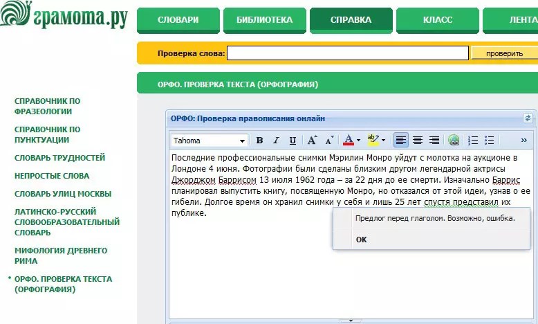 ΠΡΠΏΡΠ°Π²Π»Π΅Π½ΠΈΠ΅ ΠΎΡΠΈΠ±ΠΎΠΊ Π² ΡΠ΅ΠΊΡΡΠ΅ ΠΎΠ½Π»Π°ΠΉΠ½, ΠΏΡΠΎΠ²Π΅ΡΠΊΠ° ΠΎΡΡΠΎΠ³ΡΠ°ΡΠΈΠΈ ΠΈ ΠΏΡΠ½ΠΊΡΡΠ°ΡΠΈΠΈ ΠΏΠΎΠ·Π²ΠΎΠ»ΡΡ ΠΏΡΠΎΠ²Π΅ΡΠΈΡΡ Π³ΡΠ°ΠΌΠΎΡΠ½ΠΎΡΡΡ ΡΠ΅ΠΊΡΡΠ°.