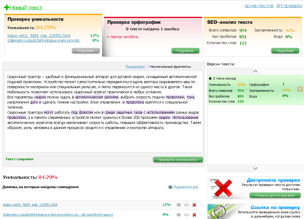 Проверить свой текст