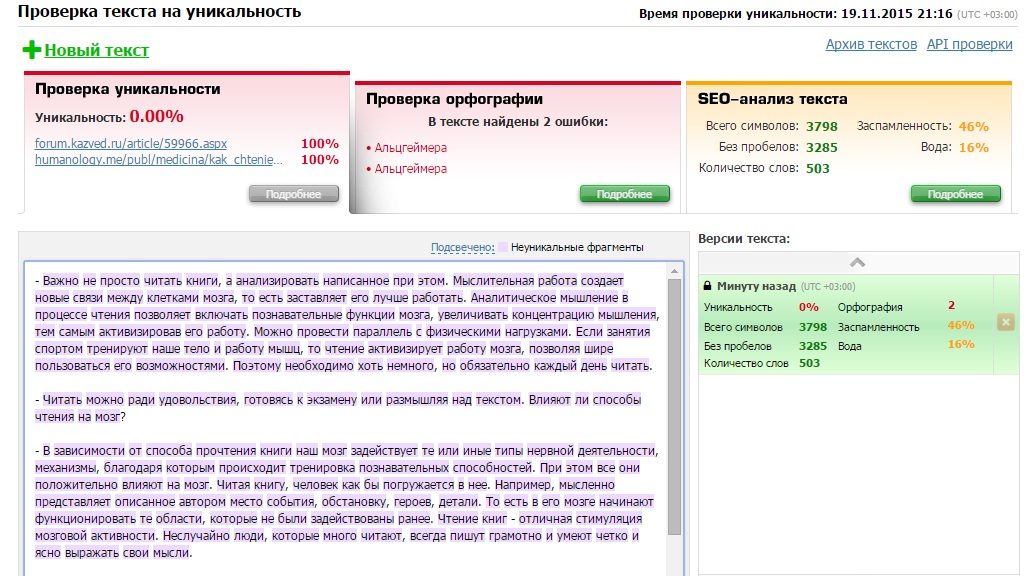 Проверка на плагиат онлайн. Проверка текста на уникальность.