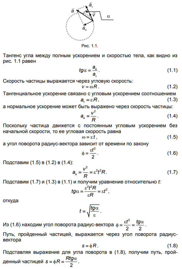 1.51. Точка движется по окружности радиусом R = 20 см с постоянным тангенциальным ускорением аr = 5 см/с2. Через какое время t после начала движения нормальное ускорение аn точки будет: а) равно тангенциальному; б) вдвое больше тангенциального? Решение: