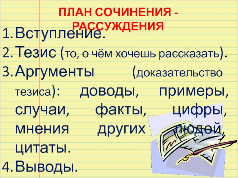 Задача – написать сочинение-рассуждение. Значит необходимо соблюдать требования к построению текста именно указанного типа речи
