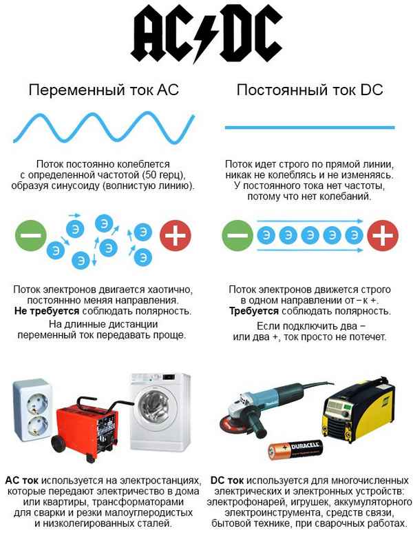 Различия между постоянным и переменным током