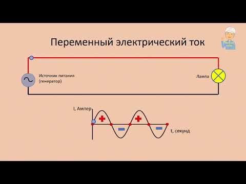 Существует простой ответ, какова разница между постоянным и переменным током. В этом примере с лампочкой на одной клемме источника питания напряжение всегда будет равно нулю. Это нулевой провод, а вот на другом — фазном, напряжение изменяется. И не только по величине, но и по направлению — с плюса на минус. Электроны не текут стройными рядами в одну сторону, наоборот мечутся вперёд-назад, одни и те же частицы пробегают по спирали накаливания туда-сюда и производят всю работу.