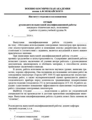 Рецензия на выпускную квалификационную работу: рассмотрим ее пример