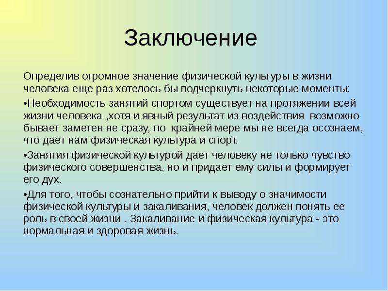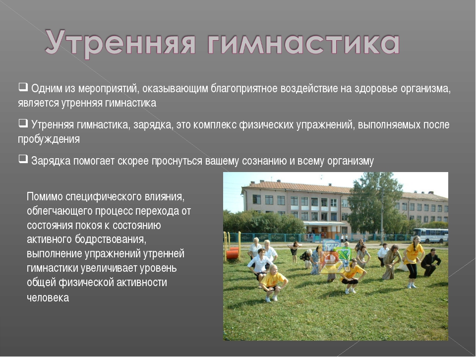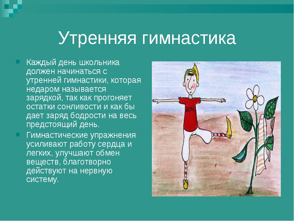 Физические упражнения дают человеку чувство бодрости, жизнерадостности, улучшают настроение, что благотворно сказывается на функции центральной нервной системы, которая, в свою очередь, регулирует все жизненные процессы.