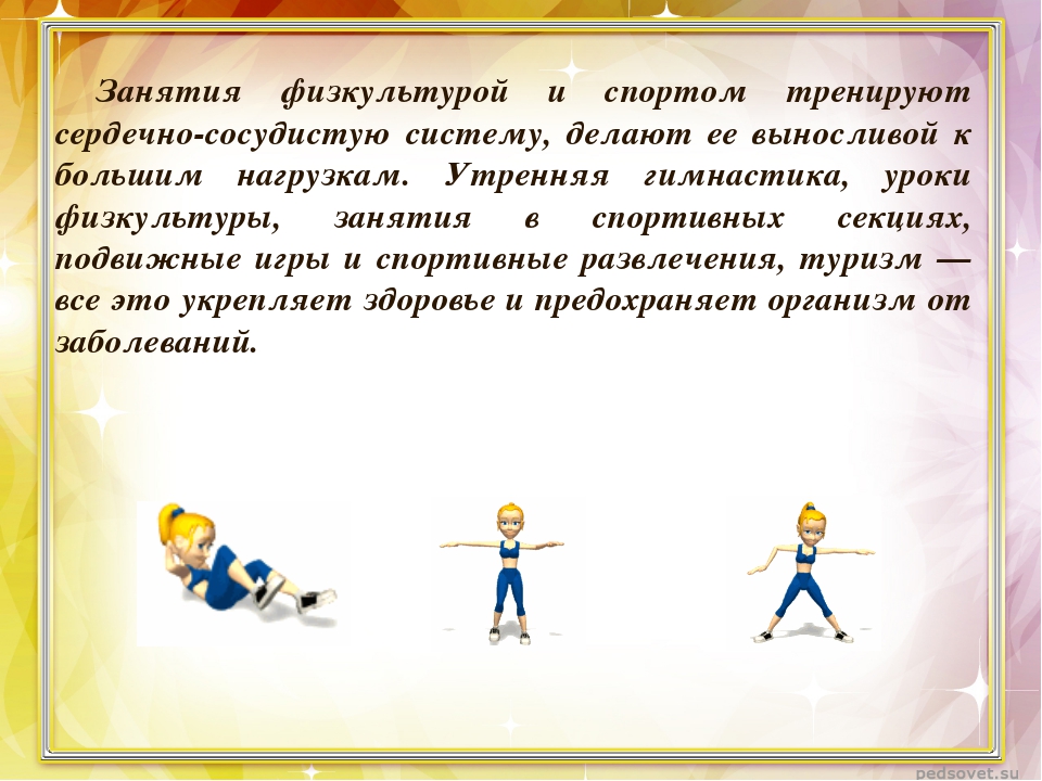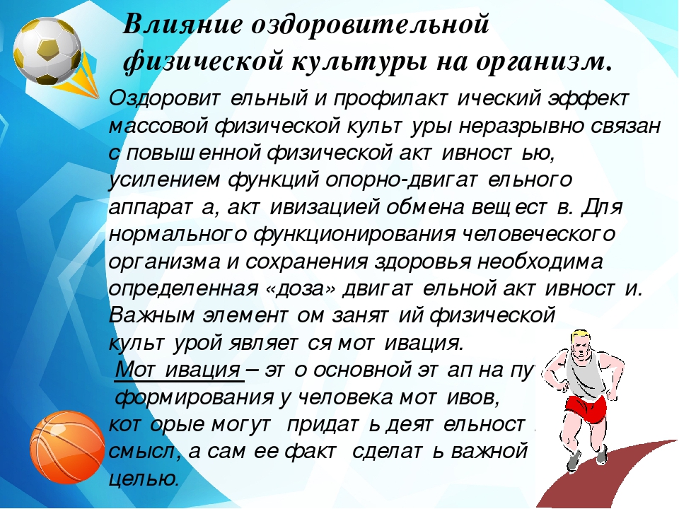 Для того чтобы понять, почему занятия физической культурой способствуют укреплению здоровья, необходимо выяснить какое влияние оказывают физические упражнения на различные системы органов человека.