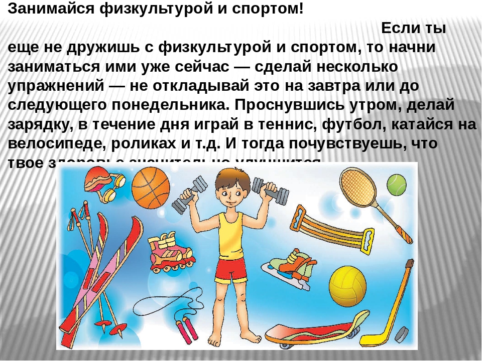 Итак, самое верное средство борьбы с любыми болезнями – укрепление здоровья. Как же его укрепить? Для этого есть немало средств: физкультура и спорт, закаливание, соблюдение правил гигиены, хорошее питание.