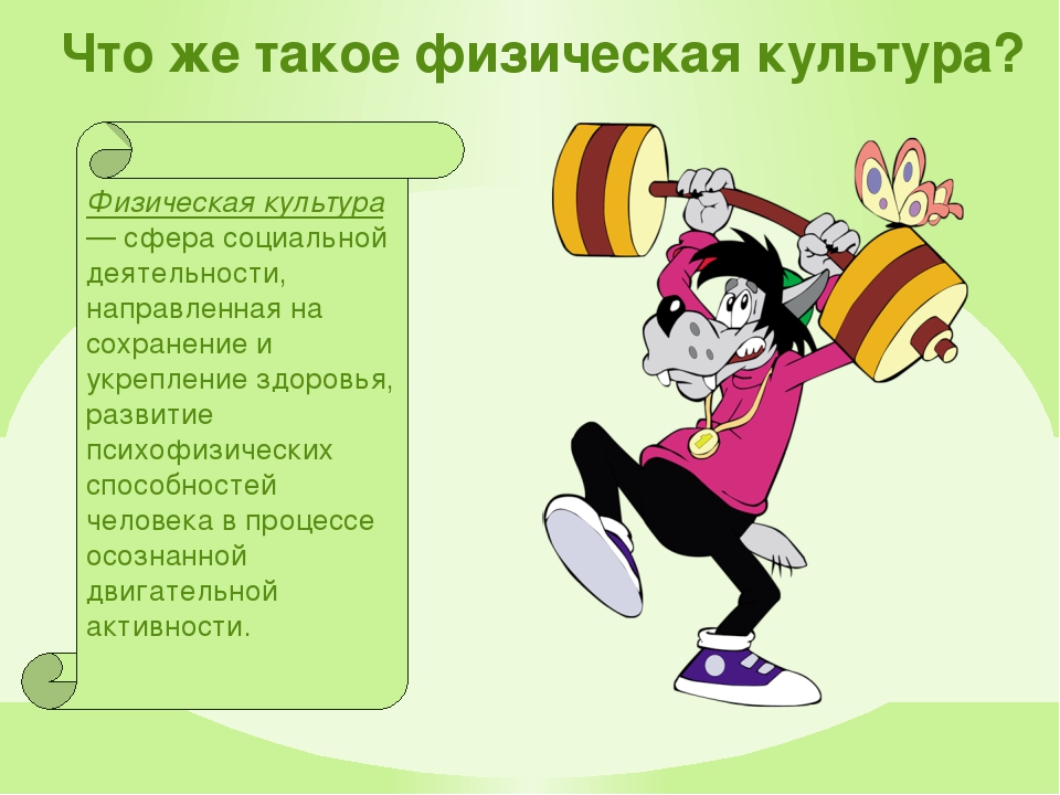 Физическая культура — часть общей культуры общества, одна из сфер социальной деятельности, направленная на укрепление здоровья, развитие физических способностей человека и использование их в соответствии с потребностями общественной практики.