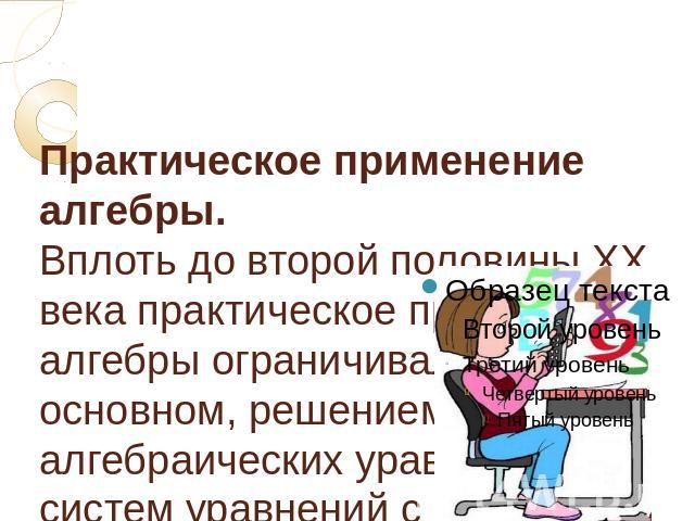 В наше время алгебра остается одной из важных и востребованных наук. Алгебра – это наука не только о числах и действия, совершаемые над ними, но и развитие логического мышления, которое так необходимо для современного мира.
