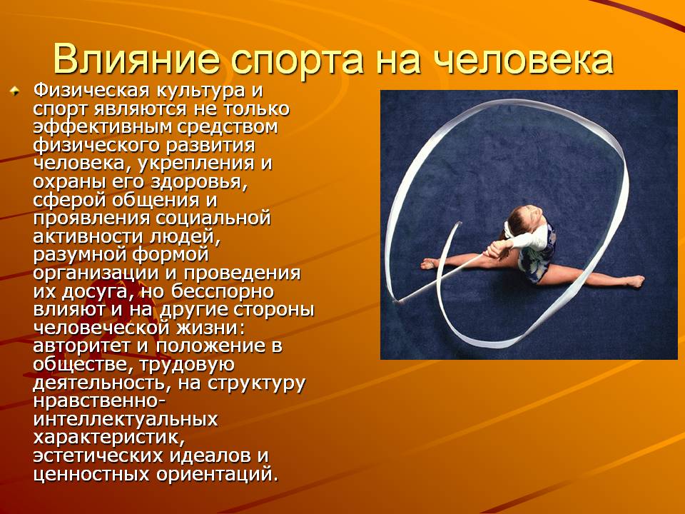 Здоровье превыше всего Неважно, каким видом спорта вы занимаетесь, ваше здоровье будет лучше, чем у людей, которые избегают спорта. Ни один другой вид деятельности не является столь продуктивным для развития выносливости, укрепления мышц и общей физической подготовки, как спорт. Чтобы достичь подтянутого тела и приятной и привлекательной личности, вам нужно заниматься спортом.