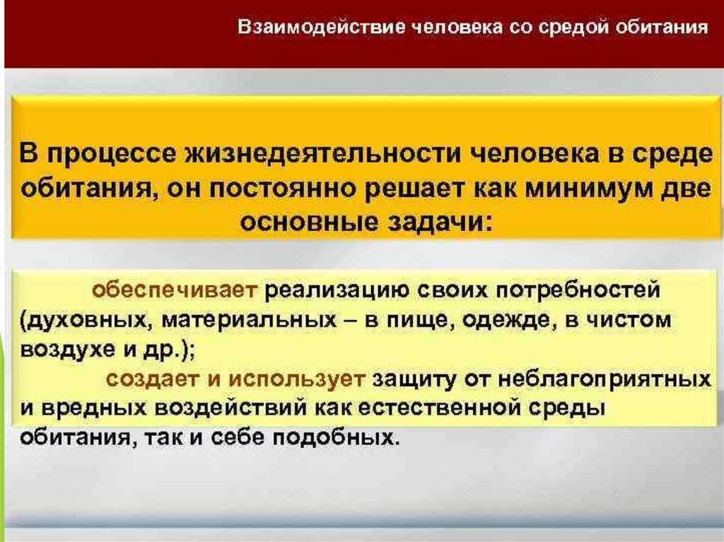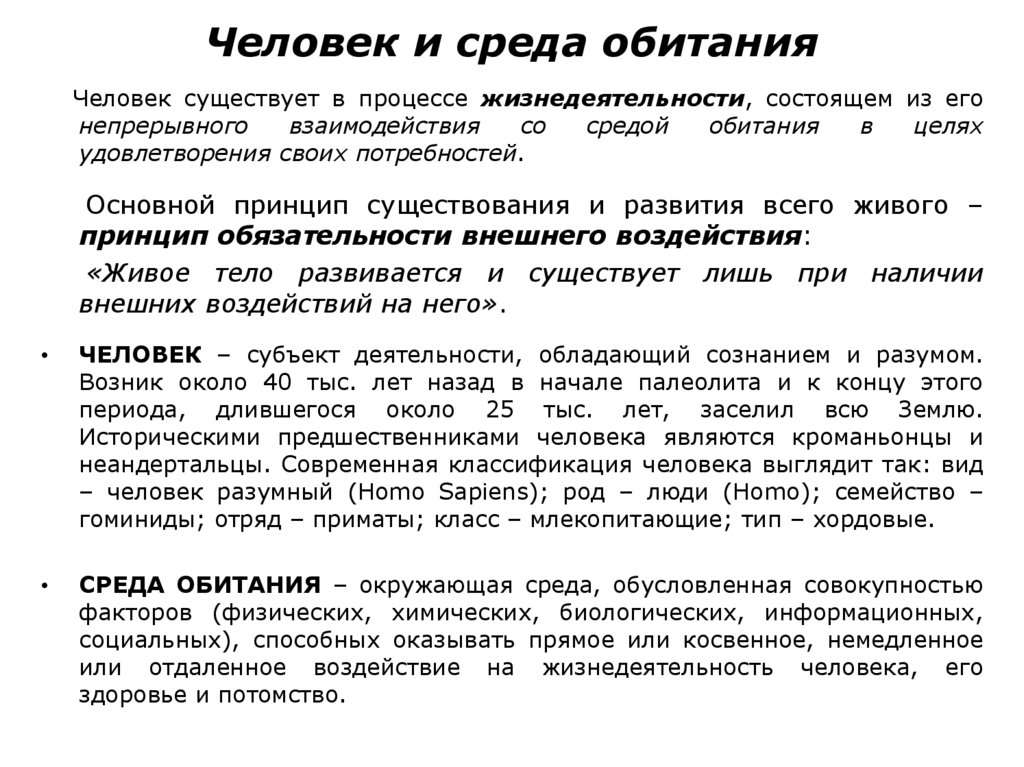 Жизнедеятельность человека протекает в постоянном контакте со средой обитания, окружающими предметами, людьми. Среда обитания может оказывать благотворное или неблагоприятное влияние на состояние здоровья человека, его самочувствие и работоспособность.