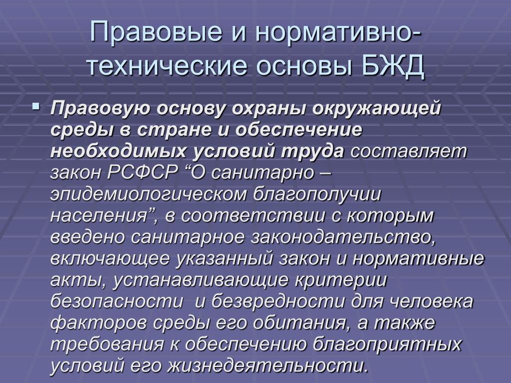 жизнедеятельности составляют соответствующие законы и постановления, принятые