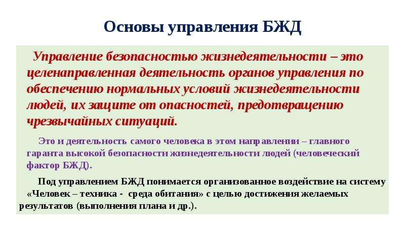 “БЖД” интегрирует области знаний по охране труда (ОТ), охране окружающей