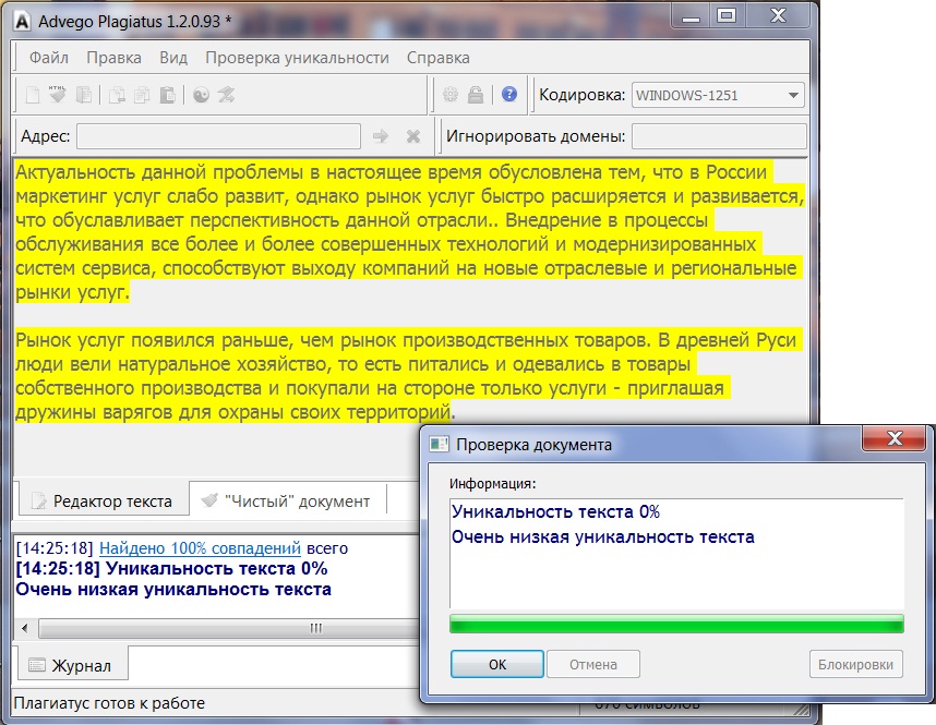 Какой уникальности можно добитьсяПри должном подходе можно добиться и 100% уникальности, было бы желание и время. Хотя в некоторых тематиках, где встречается обилие устойчивых выражений и категорически не приветствуется даже малый процент воды этот показатель будет существенно ниже. Но в пределах нормативных требований.