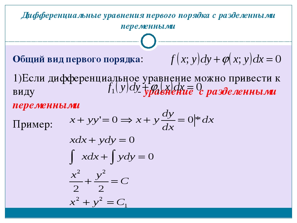Линейные дифференциальные уравнения первого порядка – это уравнения вида y’+p(x)y=q(x). Если в правой части стоит нуль: y’+p(x)y=0, то это — линейное однородное уравнение 1го порядка. Соответственно, уравнение с ненулевой правой частью, y’+p(x)y=q(x), — неоднородное линейное уравнение 1го порядка.