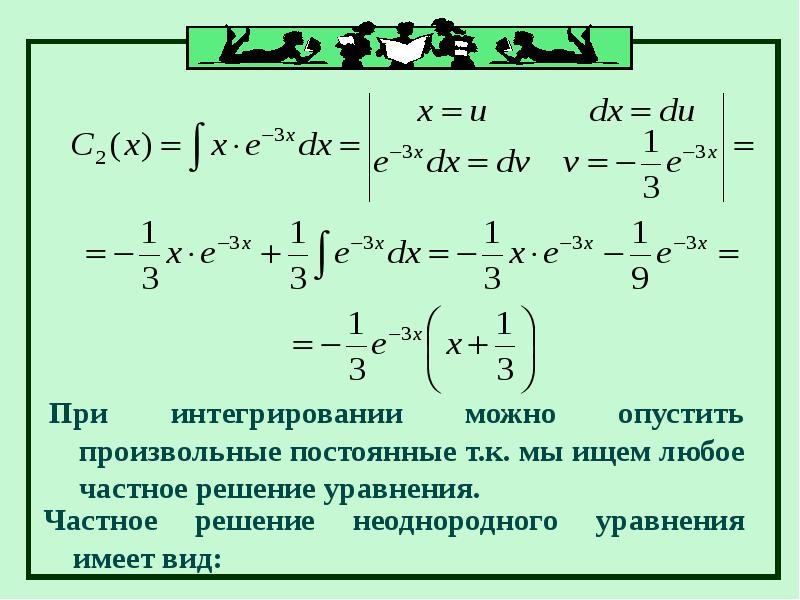Интегрируем обе части уравнения по формуле интегрирования по частям, получаем: