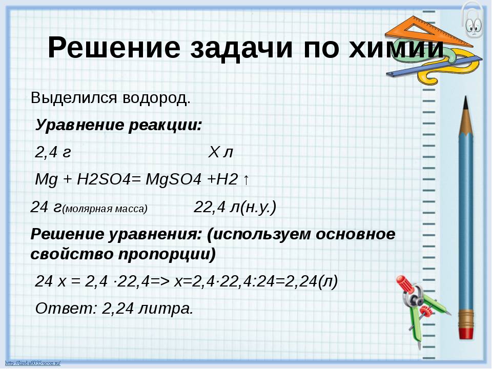 Базой для решения сложных химических задач являются простейшие уравнения, описывающие процесс химической реакции (такие задания есть и в ЕГЭ). Требуется, исходя из известной массы одного из веществ, вступающих в реакцию, рассчитать массу одной из производных реакции.