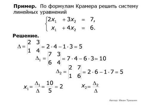 Пример 2. Найдите решение системы уравнений методом Крамера: