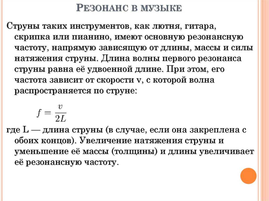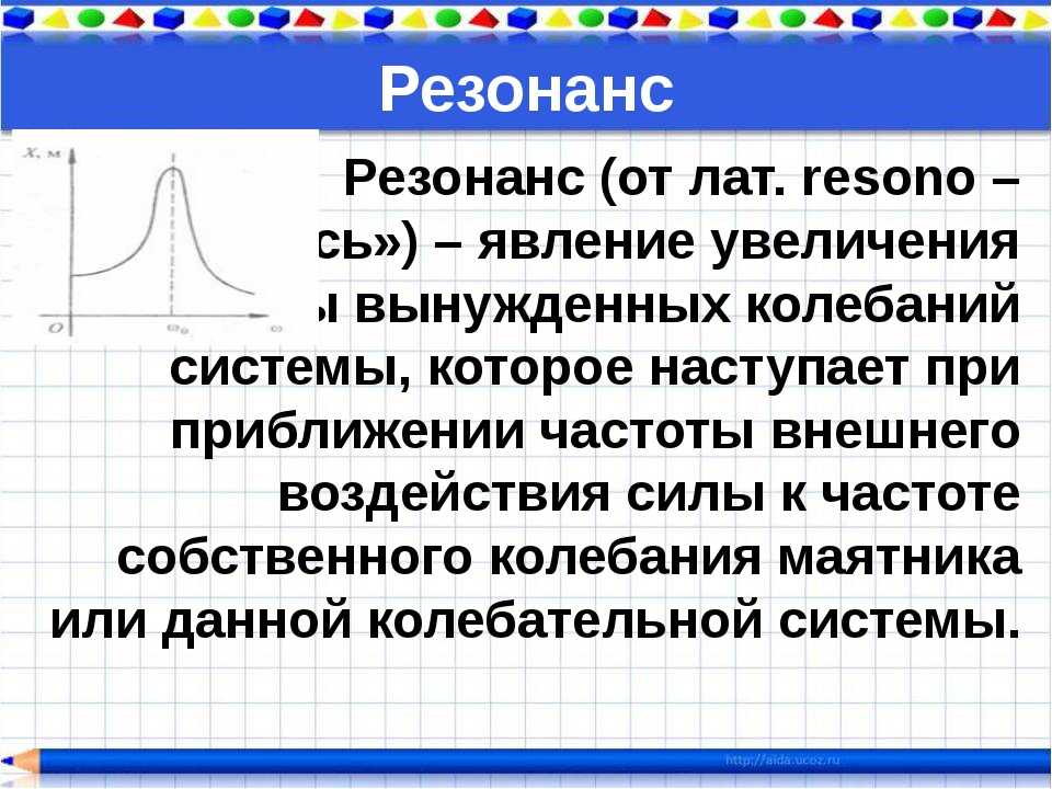 Из школьного курса физики известно, что резонансом (от лат. resono — «звучу в ответ, откликаюсь») называют резкое возрастание амплитуды колебания какой-либо колебательной системы в результате совпадения собственной частоты с частотой вынуждающей силы.
