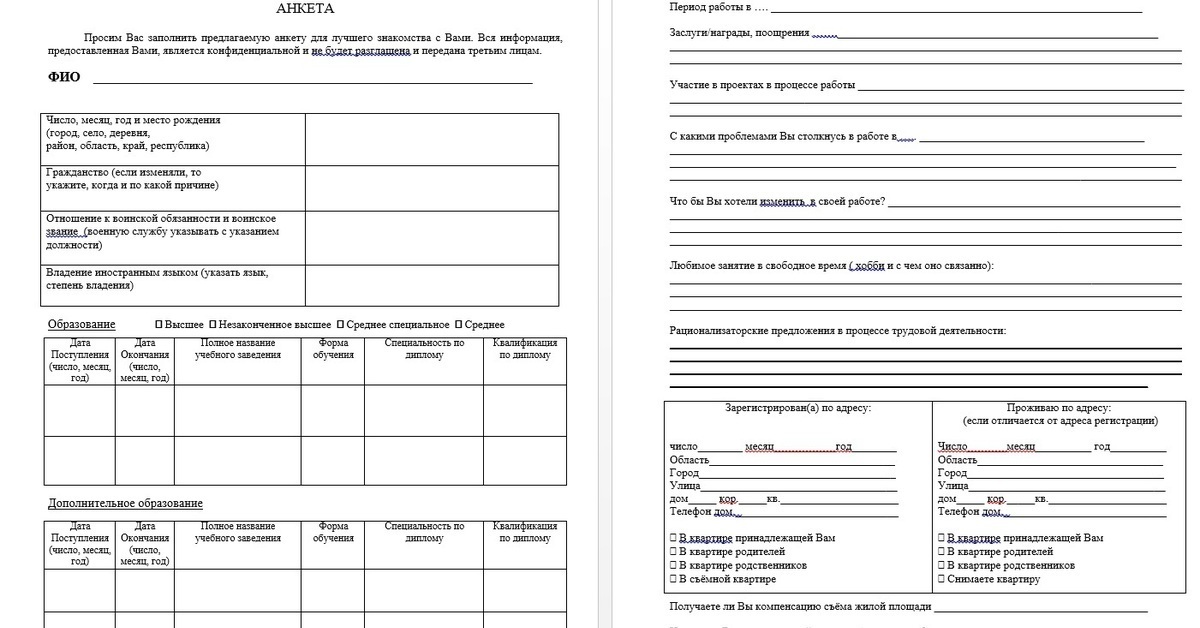Анкета может занимать 2–4 листа текста |