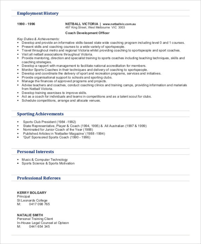 Пройденный профессиональный путь необходимо описывать в обратном хронологическом порядке. При освещении опыта работы укажите ваши должностные обязанности на каждом месте. Если должности, занимаемые кандидатом ранее, мало связаны или вообще не имеют никакого отношения к фитнесу, о них нужно упомянуть вкратце.