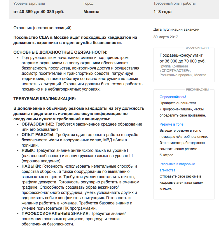 Образец резюме на работу охранника, как получить работу