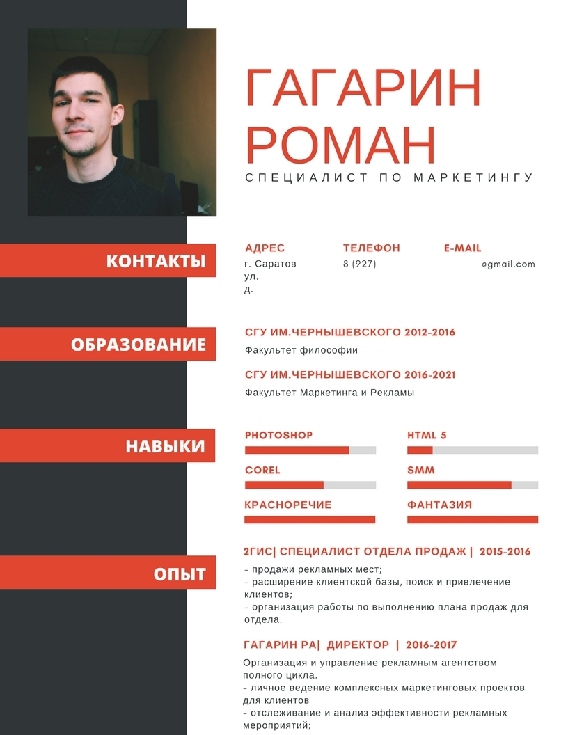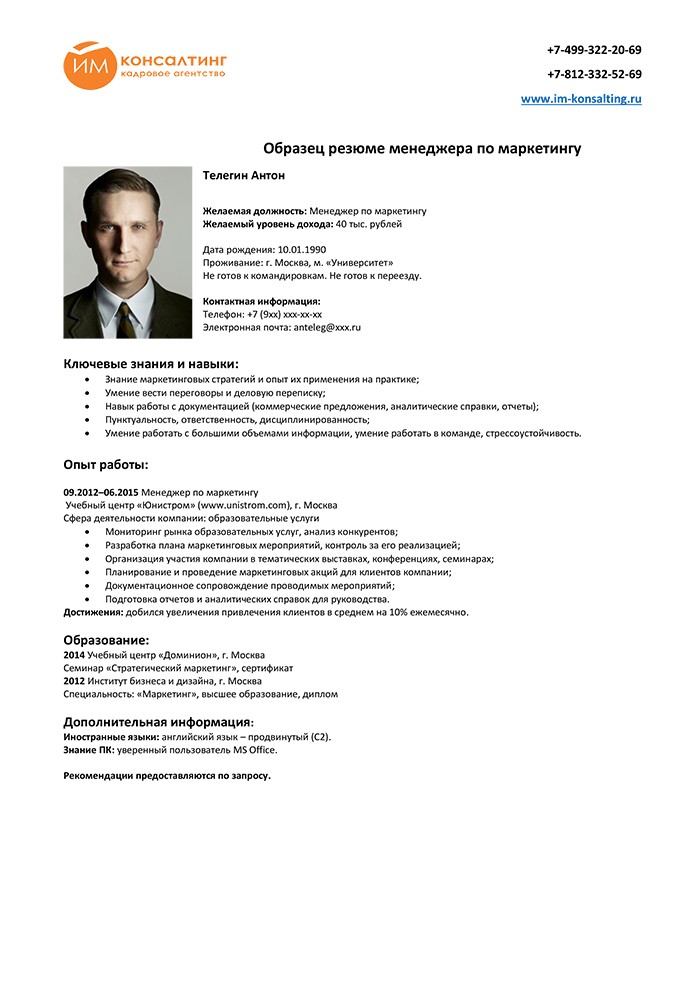 Пример резюме маркетолога