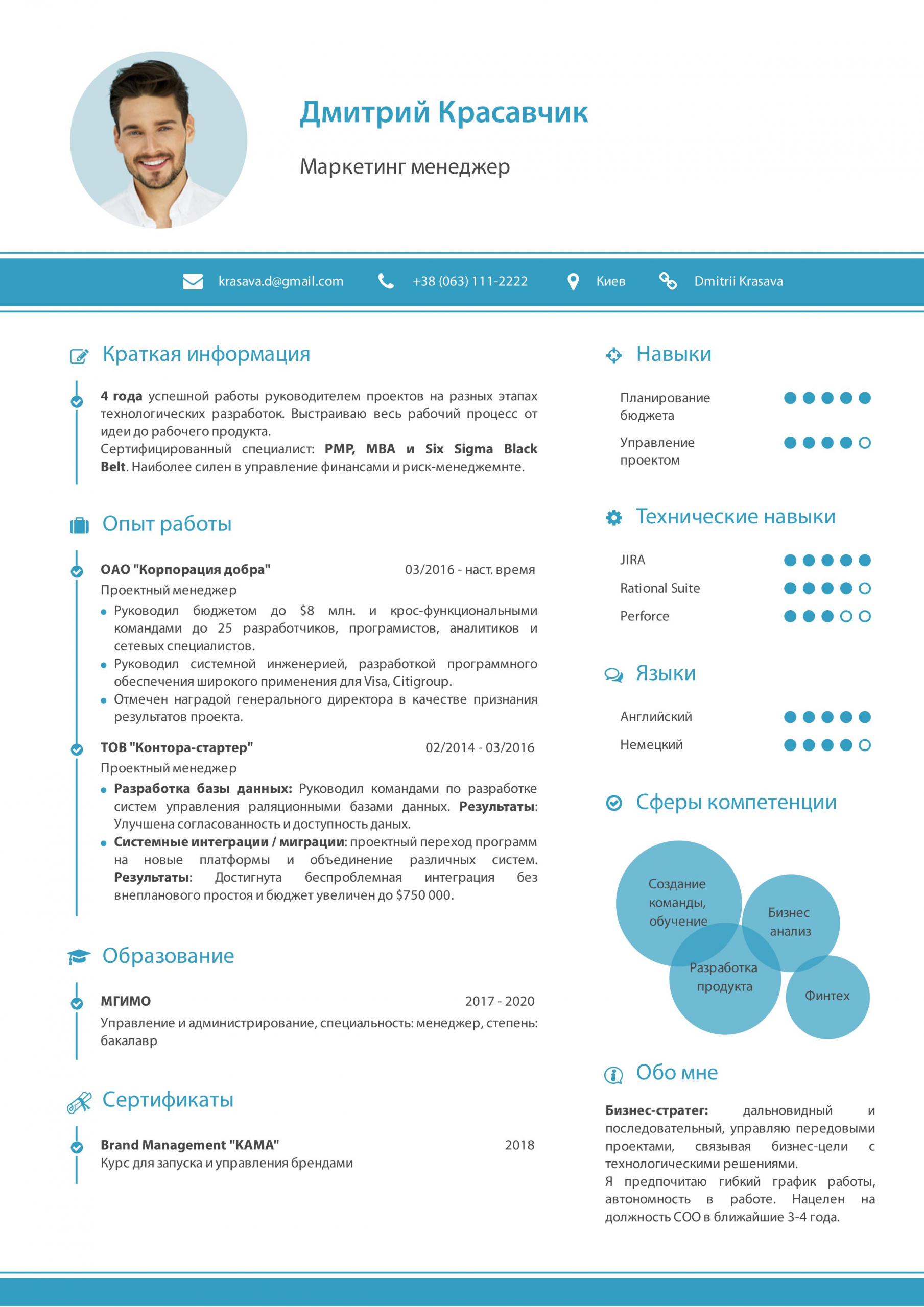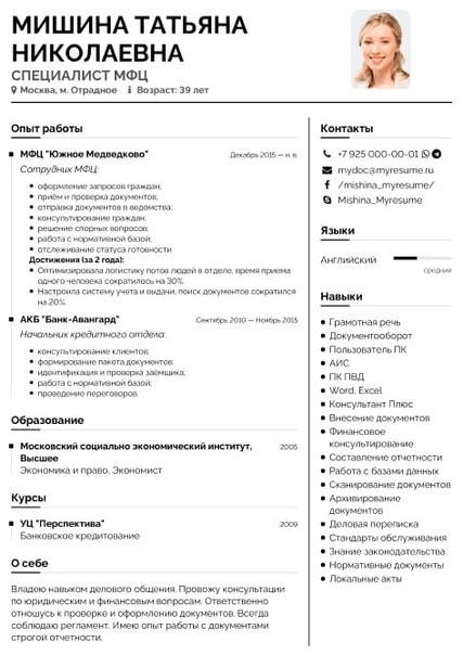 Также не забудьте про образование и личные качества, но опишите короче, чем в резюме новичка — для вас это не так важно.