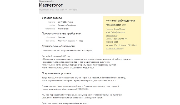 Таким образом специалист по цифровому маркетингу показывает в резюме все данные, необходимые для приема на работу.