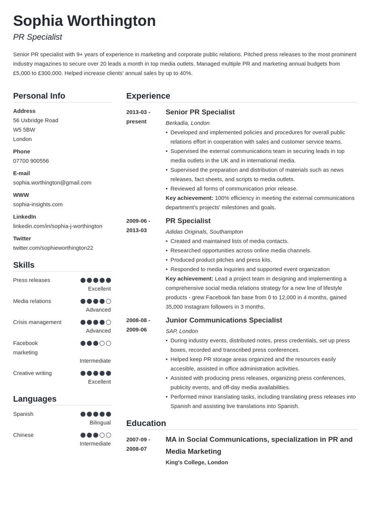 Это формат, который ожидает увидеть большинство работодателей, поэтому, если у вас есть опыт работы, это отличный вариант. . Пример резюме резюме