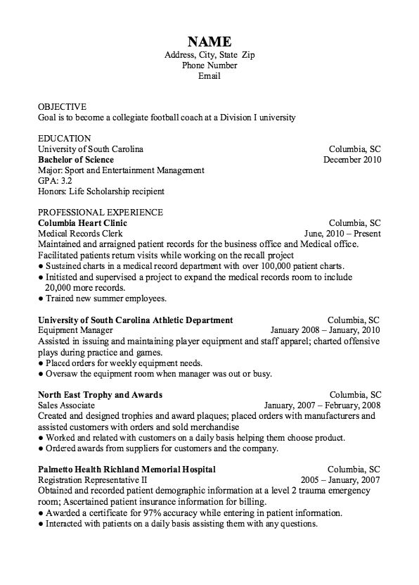 Здесь также следует отметить любые почести или отличия. Поскольку большинство спортивных тренеров имеют как минимум степень бакалавра, нет необходимости указывать ваше среднее образование. Здесь также следует указать любые сертификаты, лицензии или курсы повышения квалификации. Ниже вы найдете форматирование из нашего примера резюме.