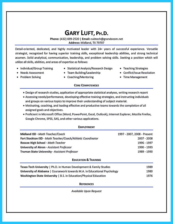 В этом разделе укажите название своей должности, многолетний опыт (если это 3+) и впечатляющее достижение, если у вас есть для этого место. Пять основных советов по написанию резюме для корпоративного тренера: